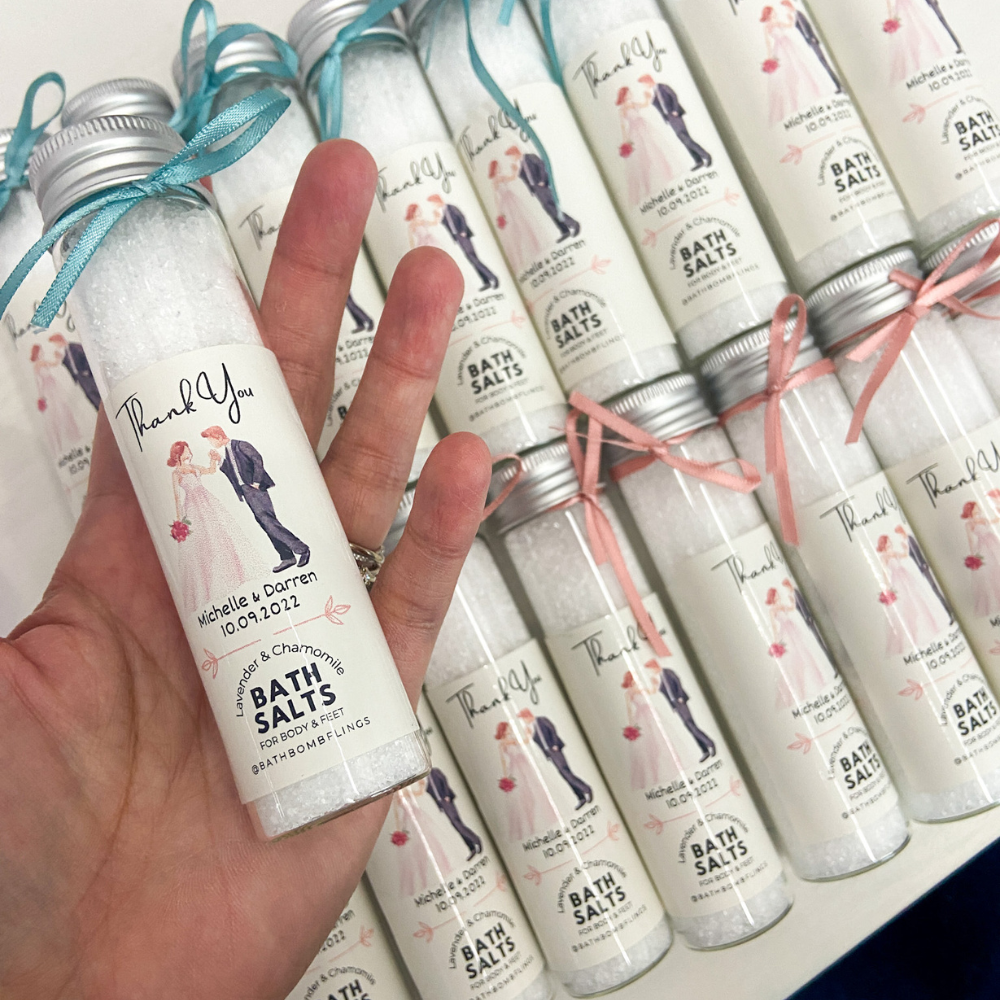 Say 'I do' to these custom bath bombs and salts as wedding favors! 🛁💍