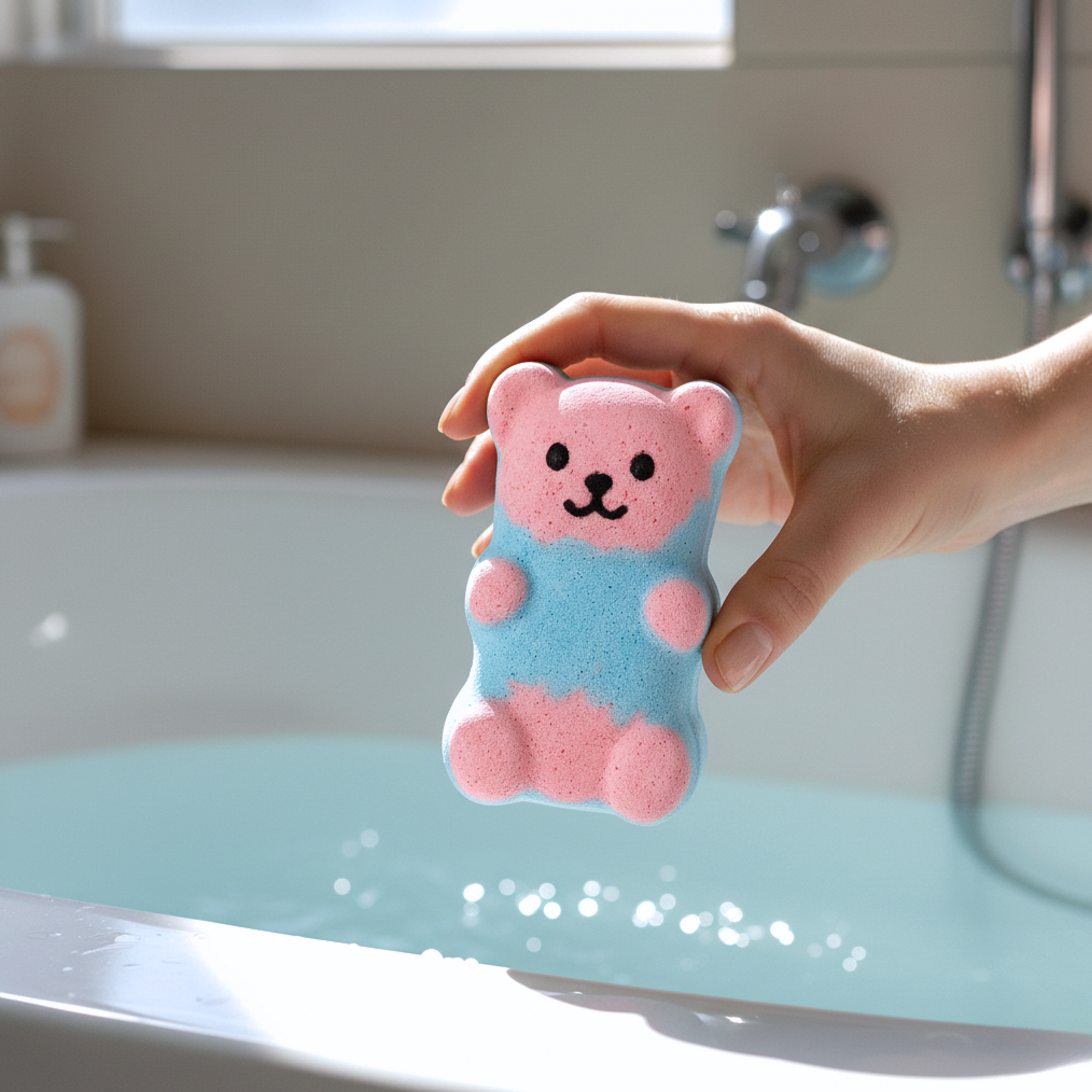 For kids, since we usually fill the tub only a third full, 1–2 baby-sized bombs or 1 shaped bomb does the trick!